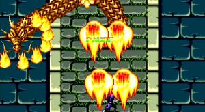 ![]() | 突如現れた双子(?)の力士。逆立ちして襲ってくるわ、張り手から炎の球を発射するわで相撲ではないようだ。つまり力士ではない…というか、それ以前の問題として |
