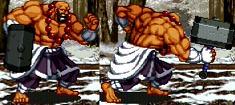金槌を前方に突き出す技。地味で通常技にしか見えませんが、これでも一応は必殺技。しかも見た目に反して2ヒット技。